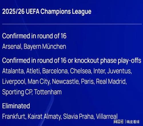 根据欧足联官方的数据,只有阿森纳和拜仁慕尼黑两支球队,可以提前一轮锁定前八名,获得直通16强的资格。阿森纳还锁定前两名,按照最新规则,在决赛之前的所有淘汰赛阶段,都拥有“先客后主”的主客场优势。