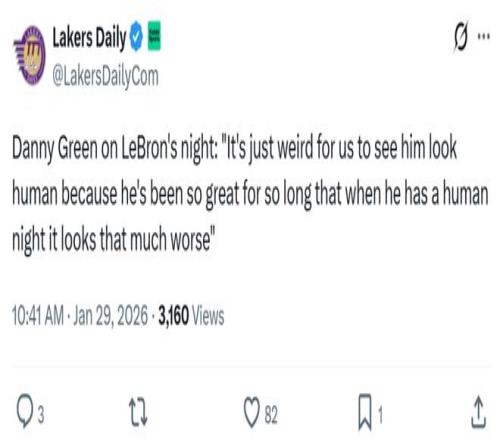 赛后丹尼格林对詹姆斯本场的表现做出了精准点评:“看着他像个平凡人一样感觉有些奇怪,毕竟他长期以来都太伟大了,所以当他某个夜晚打出平庸的表现时,看起来就会显得格外糟糕。”