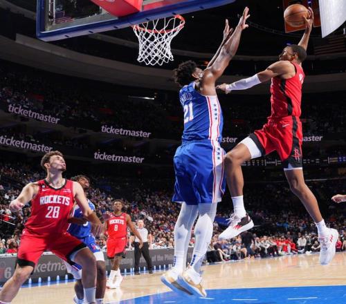 无惧关键干扰球漏判!76人双星轰68分加时胜火箭杜兰特36分8失误